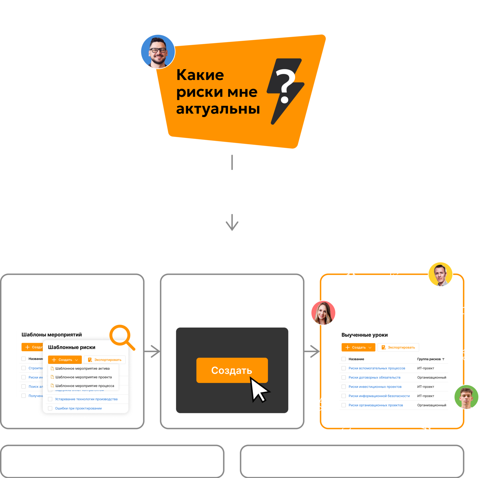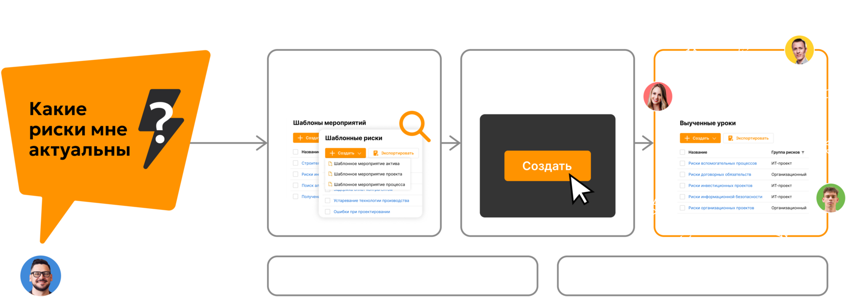 База знаний и шаблоны позволяют новым сотрудникам быстрее сориентироваться и стать уверенными участниками процессов риск-менеджмента.